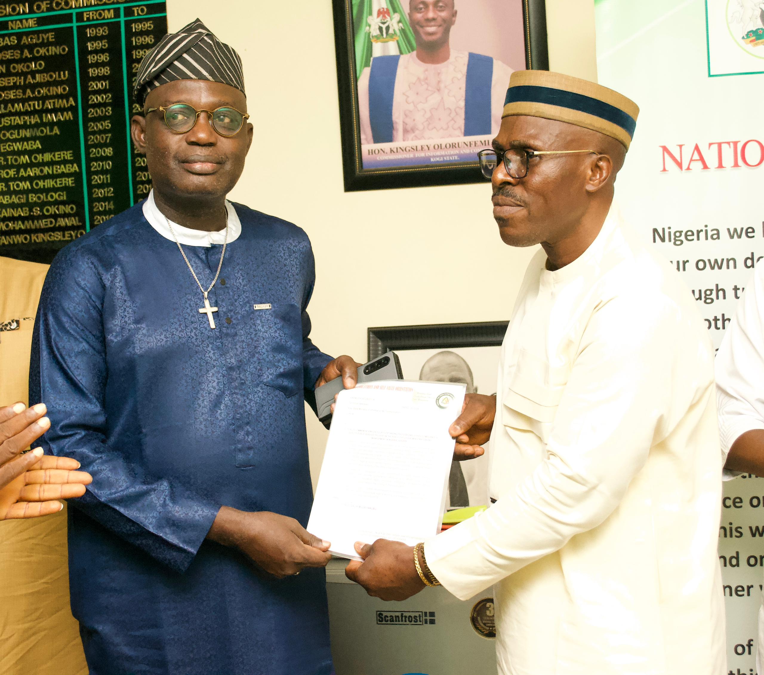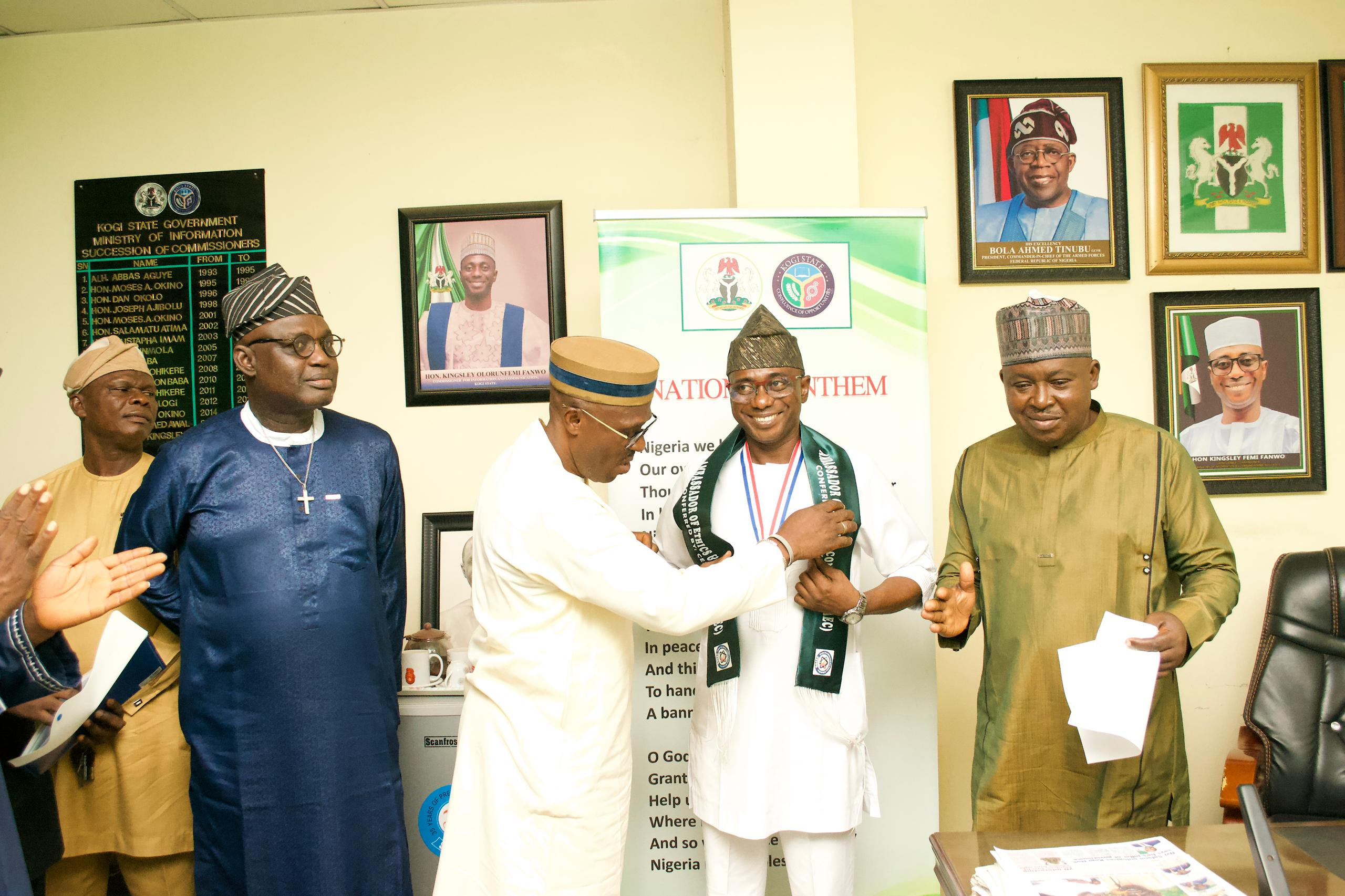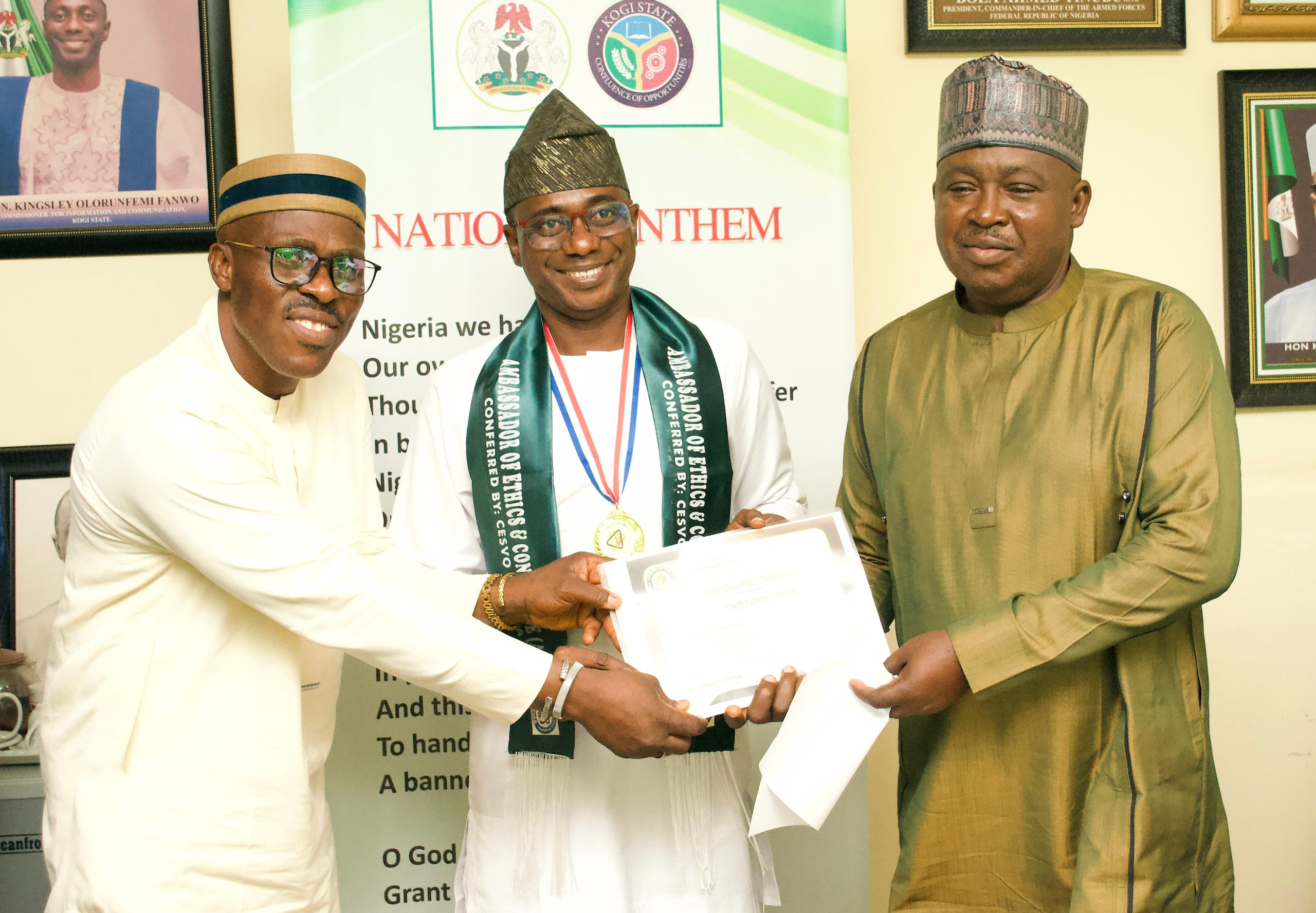 Kogi State Commissioner for Information and Communications, Hon. Kingsley Fanwo has reaffirmed Governor Ahmed Usman Ododo's unrelenting effort in ensuring that government officials exhibit high ethical conduct and be accountable to their people. The Commissioner who made the remark while receiving an award of Ambassador of Ethics and Conscience from a Non-Governmental Organization, Center for Ethics and Self Value Orientation in his office in Lokoja, today. Hon. Fanwo commended the Center for the prestigious Award, stressing that the organization was doing the right thing Nigeria needed at the moment which is value orientation in order to position the nation among the top Countries of the world, assuring the citizens trust in government as all necessary procedures are been followed. "What you are doing for Nigeria is what Nigeria needs. We need value orientation. We need value reorientation. We need to learn, unlearn, and continue to learn until we are able to position our Country in such a way that we will be able to match with the rest of the global community that are doing things right." Fanwo emphasized. Fanwo reiterated that Governor Ododo is a good leader because he demonstrated good and quality leadership at all levels, saying Governor Ododo had signed into law an inbuilt mechanism to check corruption and abuse of power in the mode of ICPC and EFCC in the state. He described the act as a system that is anchored on due process, transparency, and accountability. Earlier, the Executive Director of the Organisation, Prince Salihu …