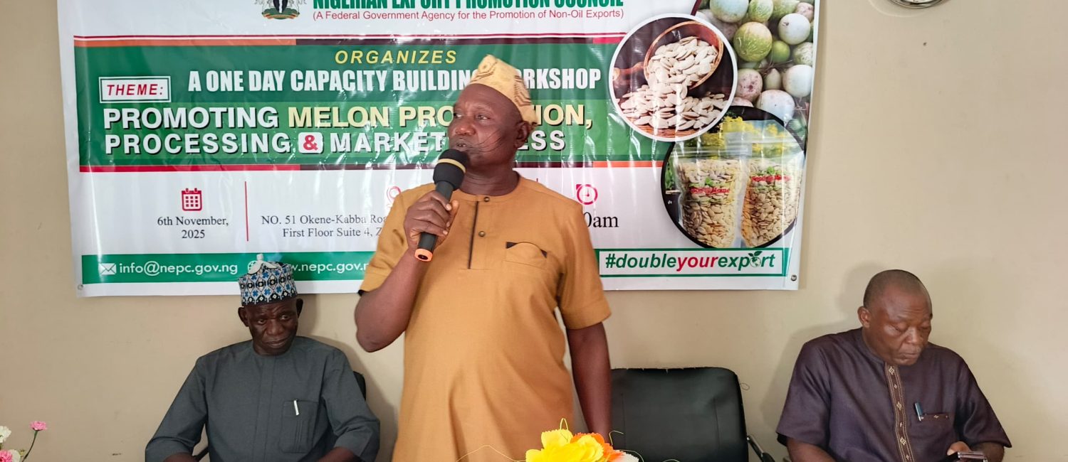 ‎In line with the State Government’s drive to strengthen non-oil exports and enhance agricultural value chains, the Nigerian Export Promotion Council (NEPC), in collaboration with the Kogi State Ministry of Commerce & Industry, held a one-day Capacity Building Workshop on Promoting Melon Production, Processing, and Market Access in Lokoja.